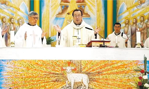 北京教区の李山大司教(中央)と