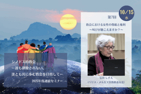 2025年度連続セミナー シノドス的教会 ー誰も排除されない、誰とも共に歩む教会を目指してー教会における女性の尊厳と権利 ~貧しい人々の声を聴こう~ 2025年度の連続セミナーは、全9回とも、対面形式での開催になります。 […]